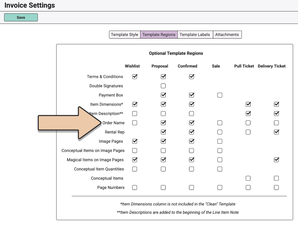 Tick the boxes next to “Order Name” to choose which PDFs you want to include the Order Name.
