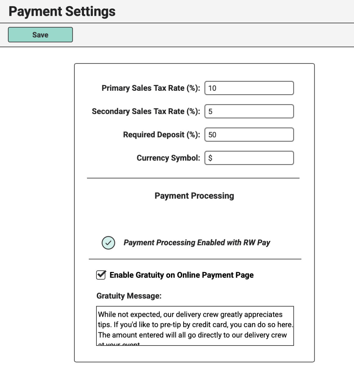 Be sure to click the green “Save” button when you’re done editing your Payment Settings to save your changes.