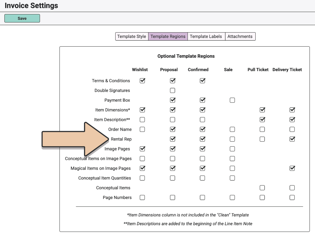 Tick the box next to “Rental Rep” for every PDF you’d like to display the Rental Rep.