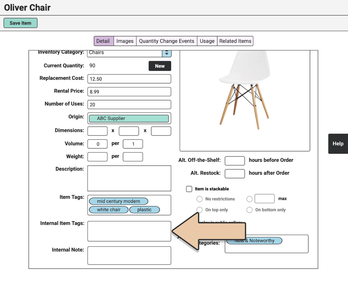 Once you’ve identified the types of Items and scenarios they fall under, you’ll need to decide on a tagging system. Head to an Item and scroll down to the Internal Item Tag field. Here, you’ll enter the tags you would use to pull Items on a Picklist.