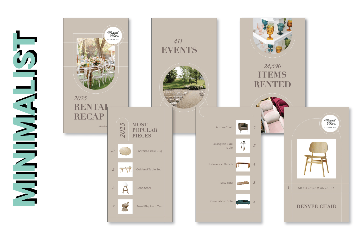 You’ll see the Top 10 Pieces you rented in 2025. Keep in mind that the #RWRentalRecap only includes Rentals Items that are displayed in your public gallery, were on Confirmed Orders. Conceptual Items, Internal Items, things that were on Proposals but never Confirmed, and Items that aren’t ticked to display in your public gallery don’t show up here.